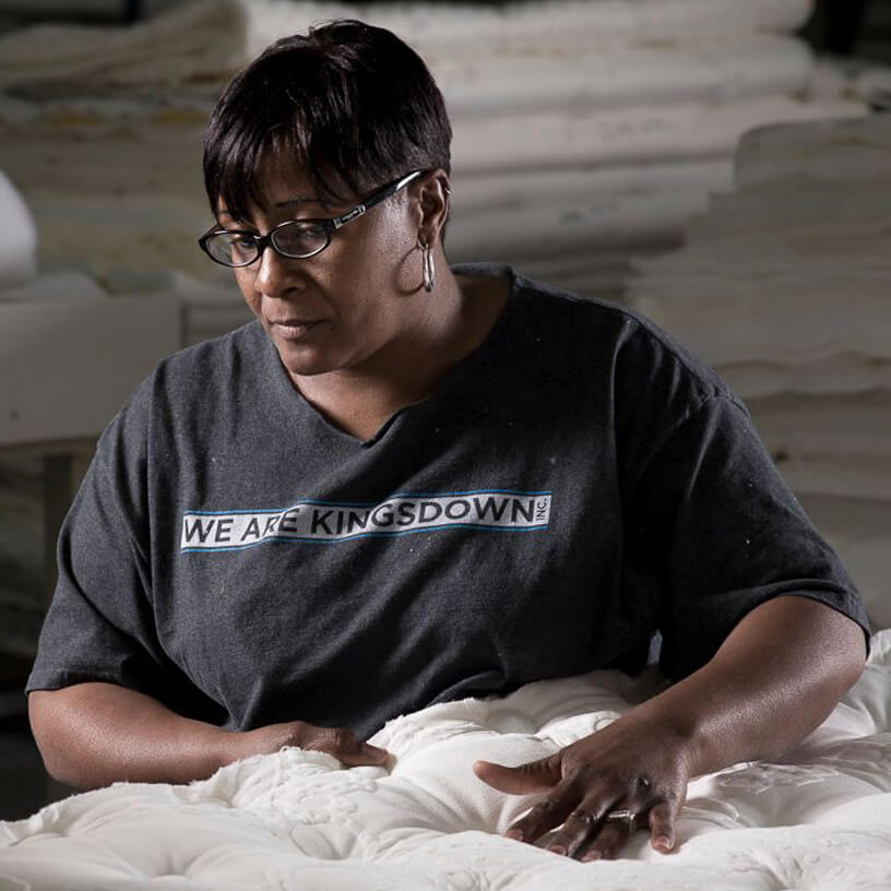 Kingsdown quality is in the caring hands of true mattress artisans. It is those who meticulously fasten every foundation and assemble every layer of specially formulated foam and individually wrapped coil. It is those who ensure superior material selection and perfection in every detail right down to the last stitch of a handcraft